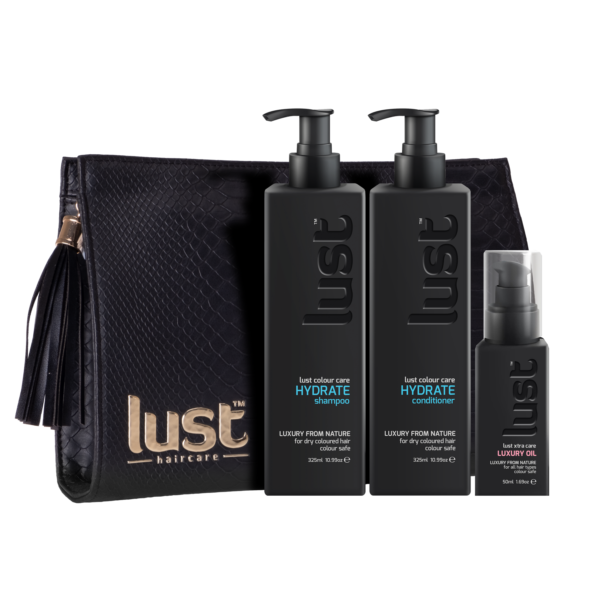 Give the gift of beautifully hydrated hair with our luxurious Hydration Gift Pack, stunningly packaged in a gorgeous faux snakeskin beauty bag and designed to quench even the thirstiest hair.