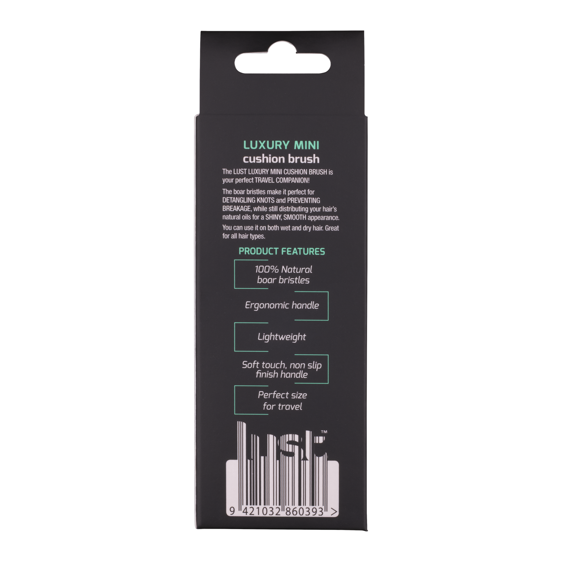 Made with Boar bristles, making our mini cushion brush perfect for detangling knots and preventing breakage, while still distributing your hair’s natural oils for a shiny, smooth appearance.