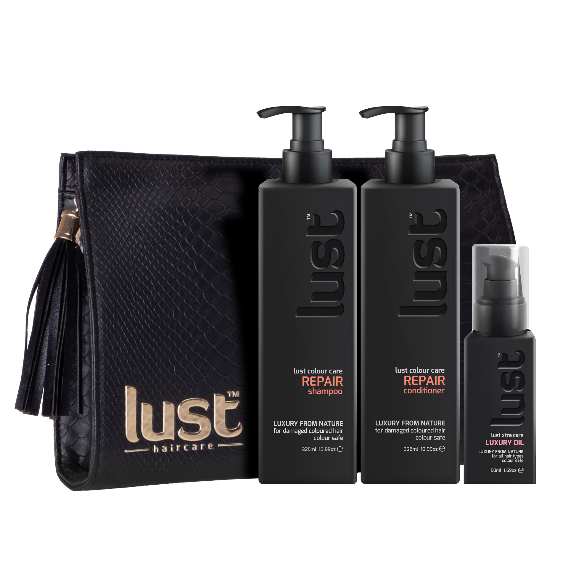 Treat your loved one to the ultimate hair restoration experience with this luxurious sulphate-free gift set, stunningly packaged in a gorgeous faux snakeskin beauty bag and designed specifically for stressed and brittle strands. Inside, youâll find a luxurious, sulphate-free shampoo and conditioner duo is specifically crafted to bring life back to damaged and colour-treated hair.